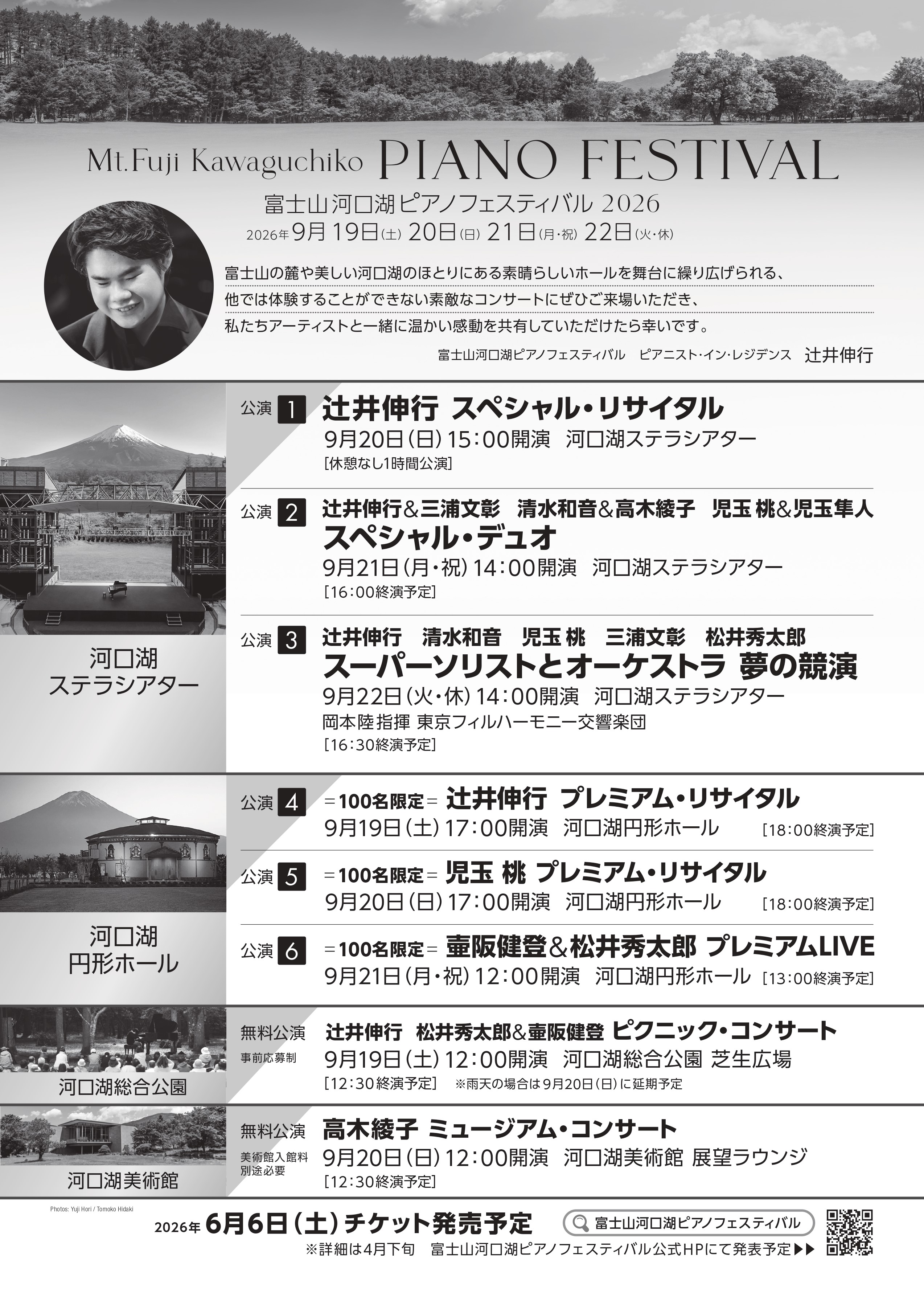 富士山河口湖ピアノフェスティバル2026 ピアニスト・イン・レジデンス:辻井伸行