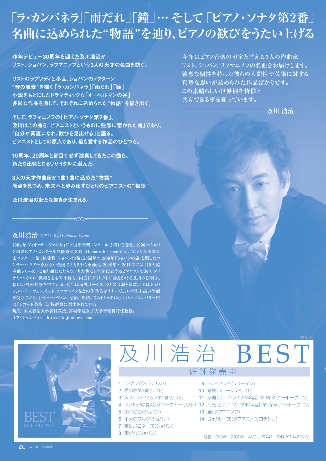 及川浩治ピアノ・リサイタル 「リスト、ショパン、ラフマニノフ~3人の天才の物語」