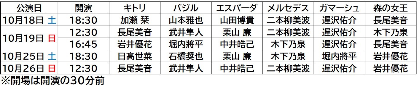 9月26日(金)18:00公演、27日(土)16:45公演、10月18日(土)18:30公演のキトリ役に、