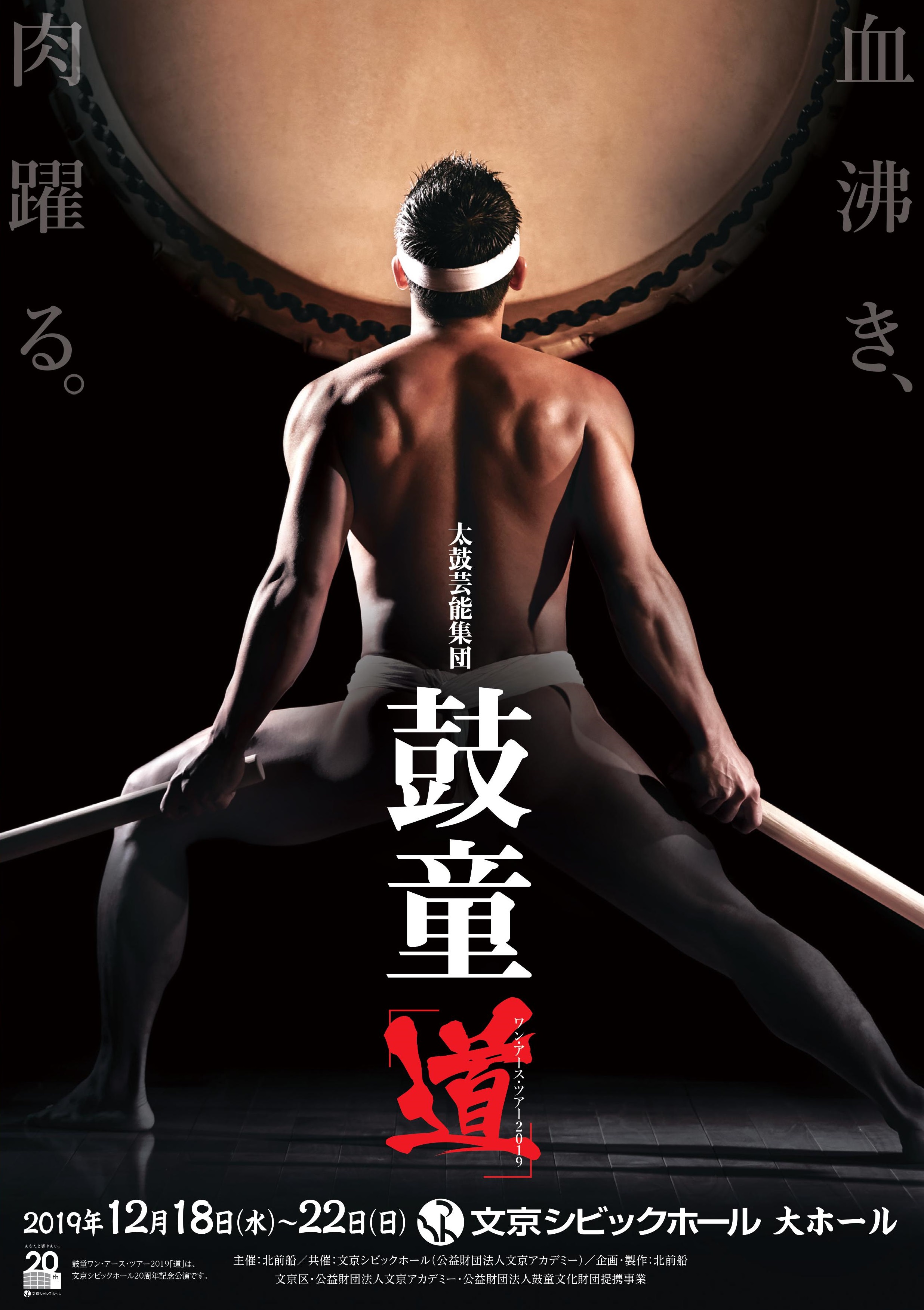 これぞ鼓童!この冬、本能を揺さぶる和太鼓をお見逃しなく!鼓童の魅力、それは和太鼓の響きで日本人の心に残る熱い想いを呼び起こすことにあります。時代を越え、言語も超え人間の本能を奮い立たせる数々の演目。中でも、大太鼓を一心不乱に叩くその姿はまさに圧巻です!『道』は、前身の佐渡の國鬼太鼓座も含め、約半世紀の歳月をかけて継承し、練り込まれた、鼓童にとって根幹ともいえる公演です。鼓童代表を務める船橋裕一郎演出のもと、いわば古典ともいえる舞台の中から「型」を抽出し、鼓童のDNAを次代へと受け継いでいきます。公式HP演出:船橋裕一郎出演:太鼓芸能集団 鼓童主催:(株)北前船