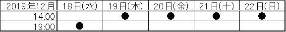 日程:2019年12/18(水)~22(日)