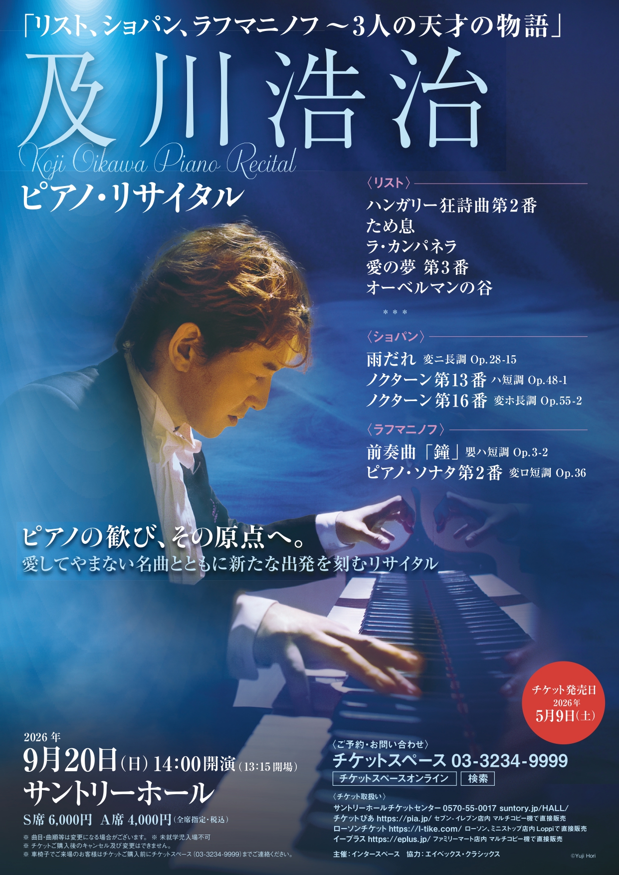 及川浩治ピアノ・リサイタル 「リスト、ショパン、ラフマニノフ~3人の天才の物語」