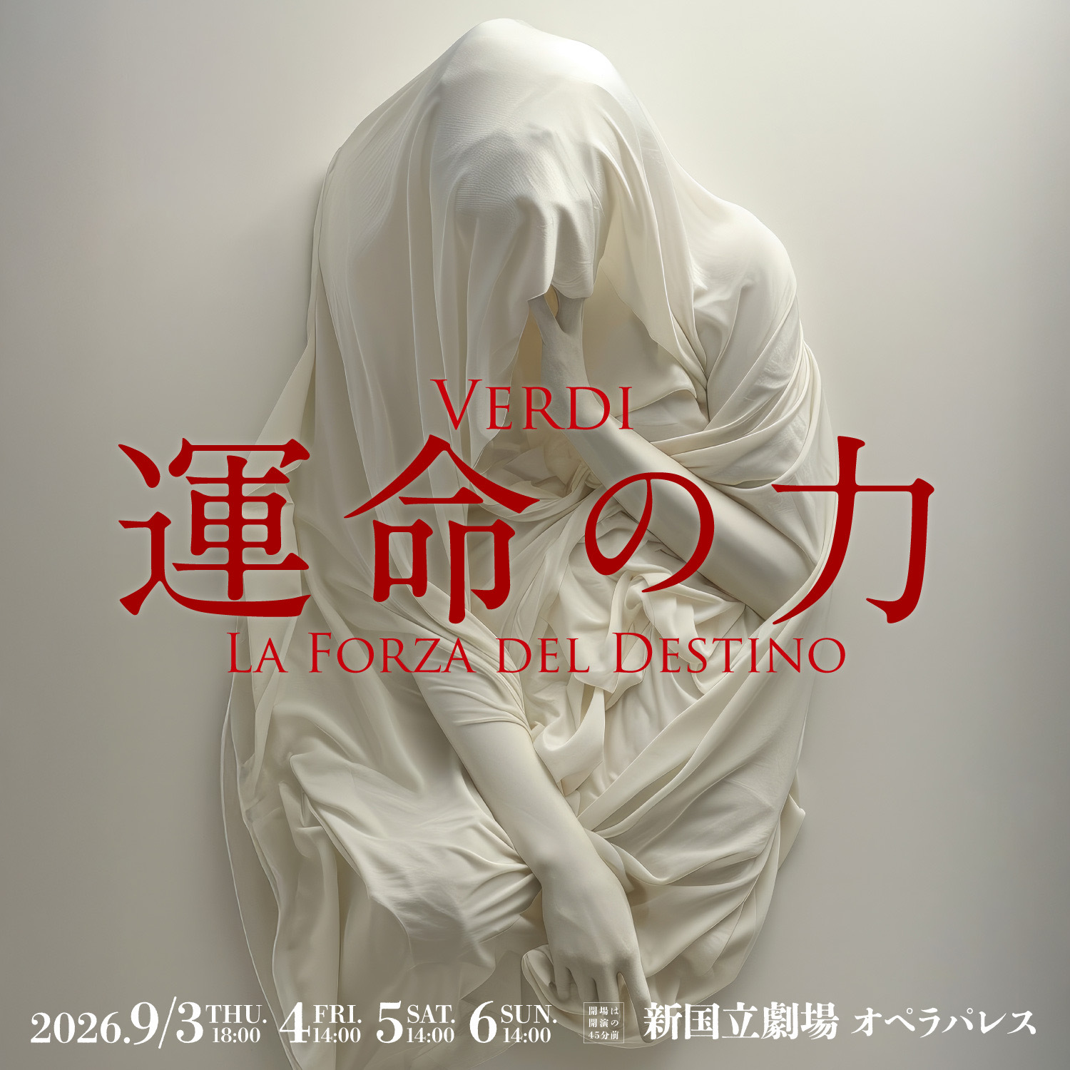 ----------------------------------------------------------------------【先行発売の案内をご希望のお客様へ】先行発売のご案内をご希望のお客様は以下の方法でお申込みください。(会員登録は無料です。)◆このご案内は必ずしもお席を確保できるというものではございません。予めご了承ください。◆メールの通信・受信環境等によるメルマガ未着の責任は負いかねます。【先行案内ご希望申込み締切】 2026年4月8日(水) 昼12時チケットスペースオンラインの 【ログイン/会員登録】より会員登録の上、 メール配信希望欄の「希望する」にチェックを入れた上で、「関心のあるジャンル」 を【オペラ、声楽】、もしくは【すべてを選択】を選択してください。■既にご登録をお済ませの方は、 チケットスペースオンラインからログインの上、会員情報メニューの会員情報変更画面で【オペラ、声楽】、もしくは「すべてを選択」にチェックがあるかご確認ください。先行発売のご案内は、メルマガで4月8日(水)中にお送りします。上記日時を過ぎても何も届かない場合は4月9日(木)10~15時までにチケットスペースまでお電話にてお問い合わせ下さい。