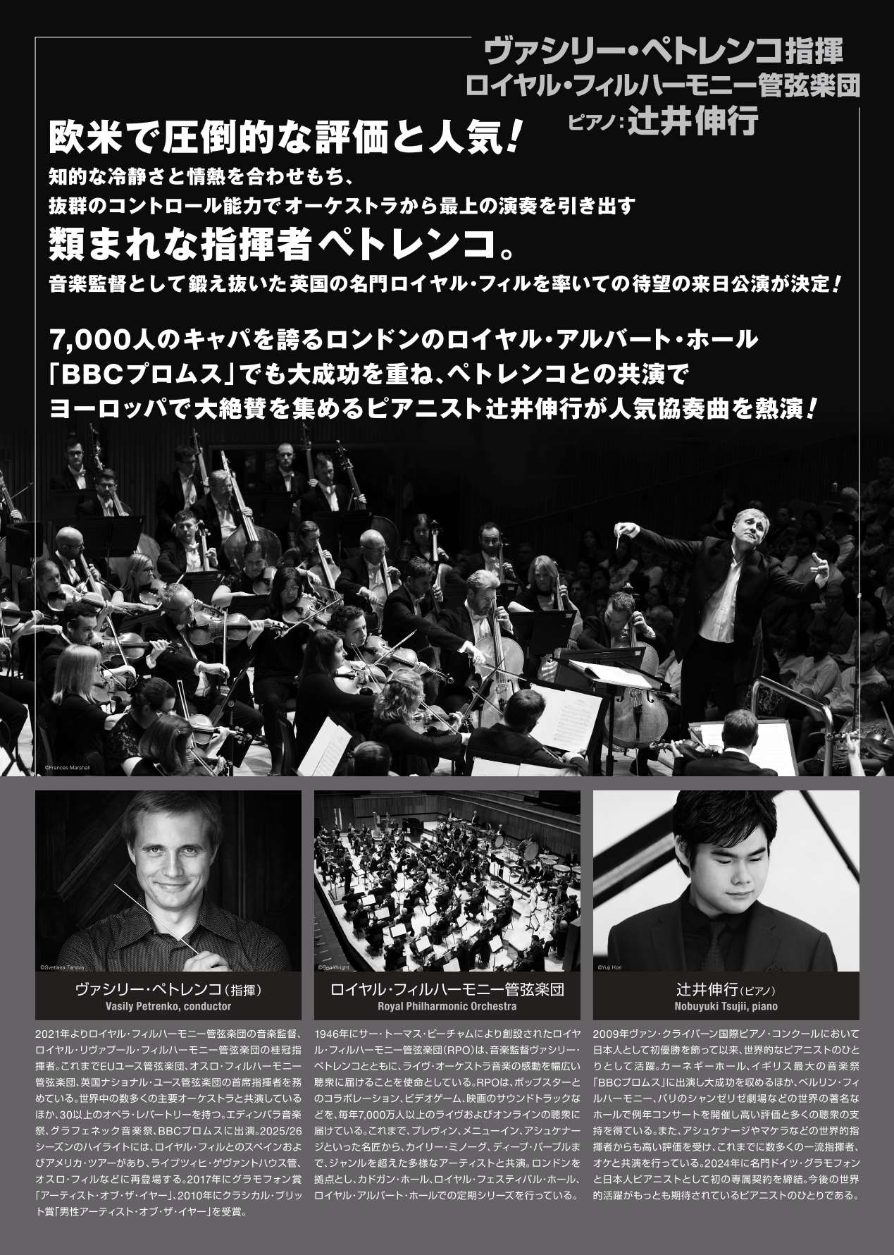 「女王陛下のオーケストラ」と称されイギリス国民に愛されてきた名門ロイヤル・フィルが音楽監督のヴァシリー・ペトレンコに率いられ待望の来日! ロンドンでも高く評価されるピアニスト辻井伸行と共演!